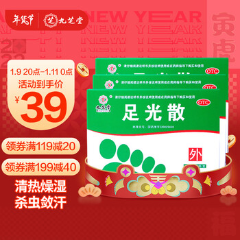 31.2元抢购九芝堂 足光散 40g*5袋*3盒 清热燥湿 杀虫敛汗 用于湿热下注所致的角化型手足癣及臭汗症