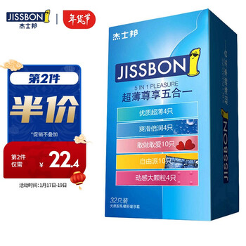 抢购杰士邦 进口避孕套 超薄安全套 尊享五合一32只 凸点大颗粒 套套男用女用 计生成人用品