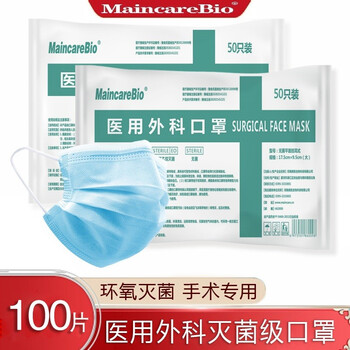 抢购【MaincareBio】医用外科口罩一次性无菌三层透气成人挂耳式防细菌病毒飞沫防护医用口罩 成人医用外科口罩100只(50只/包*2包)