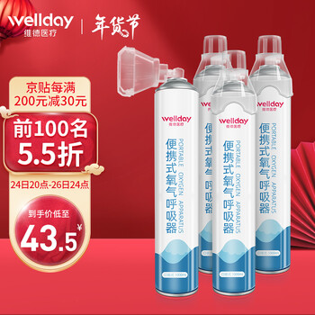 56.8元抢购维德医疗氧气瓶便携式氧气罐 孕妇老人学生家用吸氧气袋氧气呼吸器制氧机 高反应急旅游氧气包1000ml*4瓶