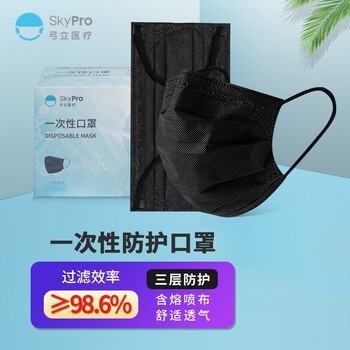 弓立(SKYPRO) 成人儿童口罩 防尘透气 秋冬季透气一次性防护口罩 新老款随机发货 纯黑民用口罩100只